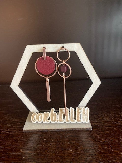 asymmetrisch cirkels-staafjes bordeaux-rosé