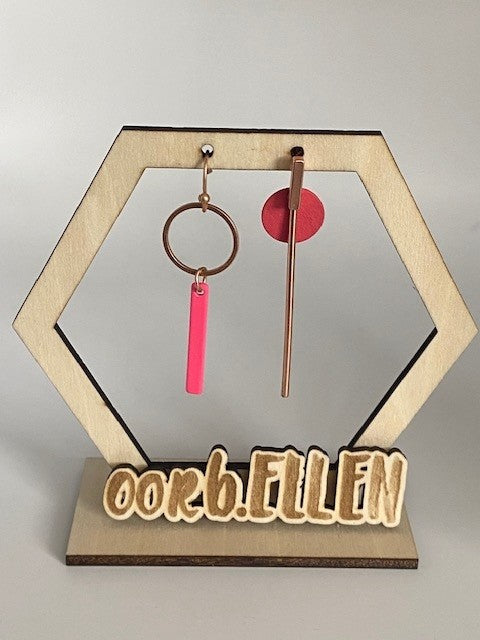 asymmetrisch paartje staafjes cirkels roze rosé