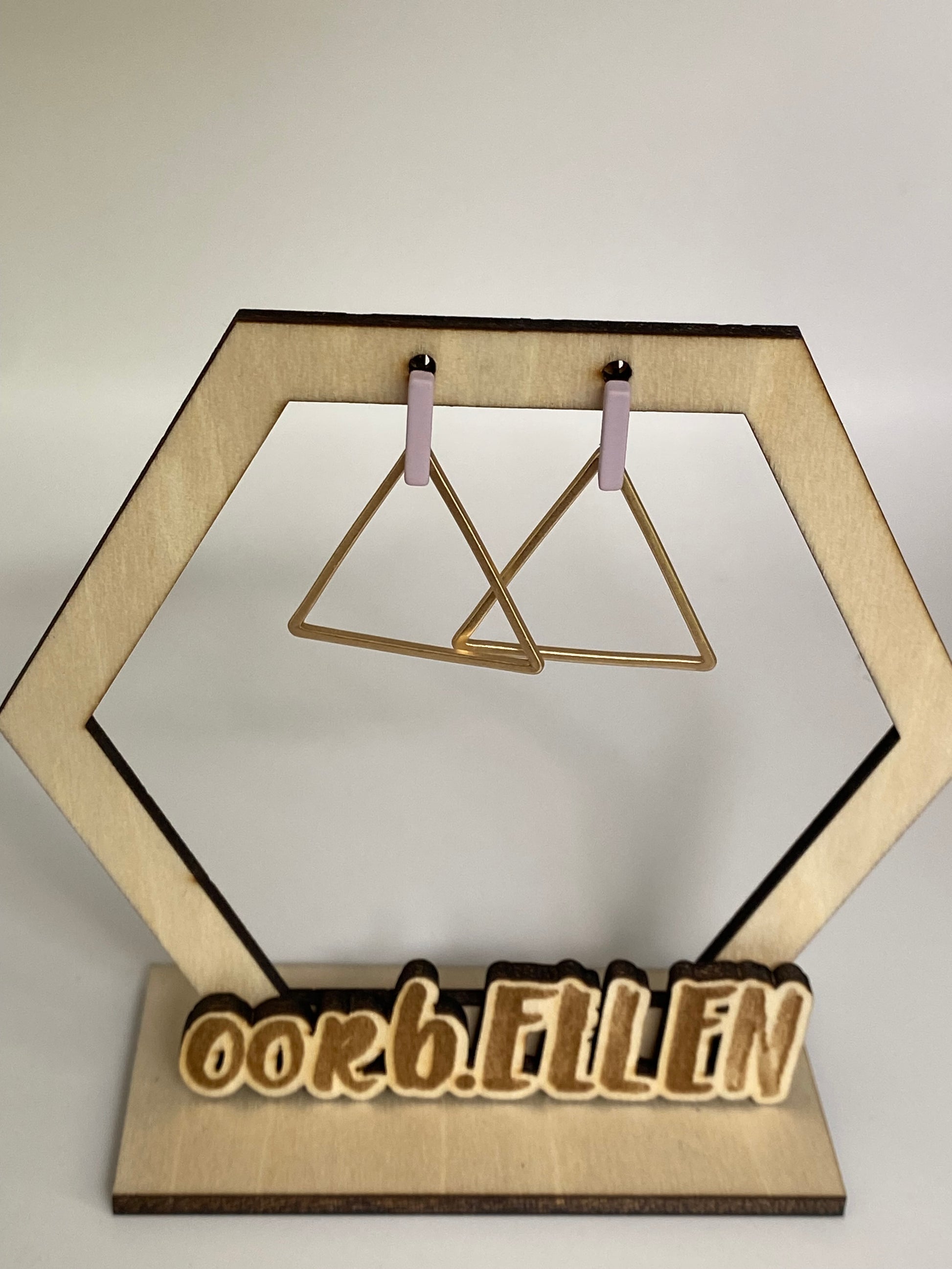 Gouden driehouken aan lila staafjes
